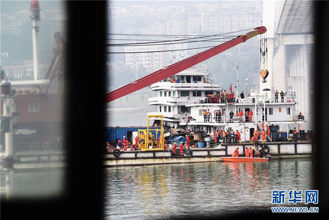 這是10月30日拍攝的重慶萬(wàn)州公交車墜江事故救援現(xiàn)場(chǎng)。新華社記者王全超攝