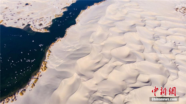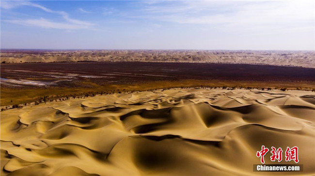 羅布湖與沙漠交匯處猶如入???。李飛 攝