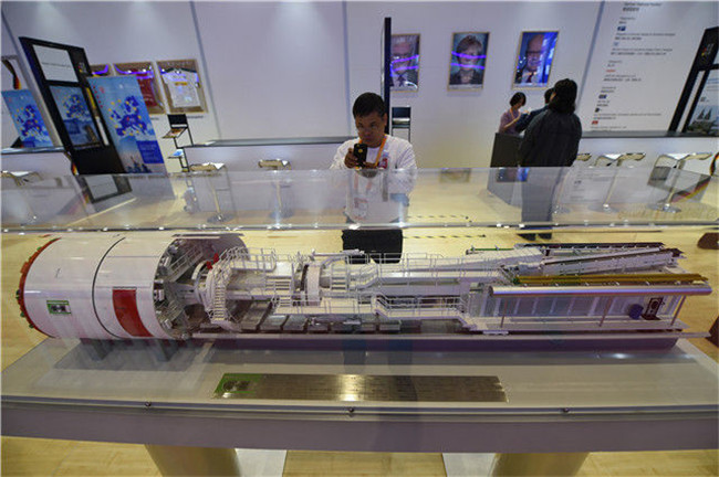 11月5日,一名參觀者在德國展館內(nèi)拍攝雙護(hù)盾盾構(gòu)機(jī)模型。當(dāng)日,中國國際進(jìn)口博覽會(huì)在上海開幕。國家貿(mào)易投資綜合展(國家展)是中國國際進(jìn)口博覽會(huì)的重要內(nèi)容,共有82個(gè)國家、3個(gè)國際組織設(shè)立71個(gè)展臺(tái)。國家展中,印度尼西亞、越南、巴基斯坦、南非、埃及、俄羅斯、英國、匈牙利、德國、加拿大、巴西、墨西哥等12個(gè)主賓國均設(shè)立了獨(dú)具特色的展館。新華社記者 韓瑜慶 攝