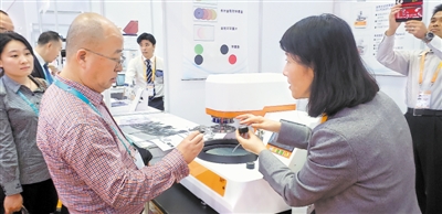 寧夏金海逸環(huán)保設(shè)備工程有限公司總經(jīng)理呂忱對(duì)智能及高端智能裝備制造展區(qū)興趣濃厚。