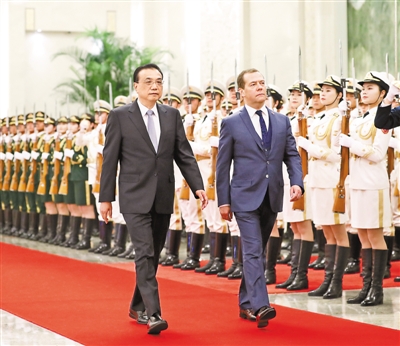 李克強(qiáng)指出,今年以來,中俄經(jīng)貿(mào)合作持續(xù)快速發(fā)展,年內(nèi)貿(mào)易額有望突破1000億美元,未來合作潛力巨大。希望雙方繼續(xù)提升貿(mào)易便利化水平,擴(kuò)大相互投資規(guī)模,深化農(nóng)業(yè)合作,推進(jìn)中俄跨境電子商務(wù)健康穩(wěn)定發(fā)展,加強(qiáng)在創(chuàng)新領(lǐng)域、特別是在科技應(yīng)用和基礎(chǔ)研究領(lǐng)域合作。以今明兩年舉辦中俄地方合作交流年為契機(jī),調(diào)動兩國各地方開展更加廣泛的合作。繼續(xù)深化人文交流,加強(qiáng)媒體、青年、旅游、衛(wèi)生、體育各領(lǐng)域交流。