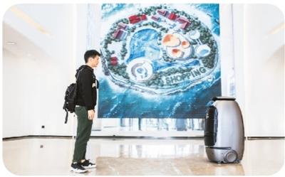 在阿里的未來酒店里,機器人正在服務(wù)客人。