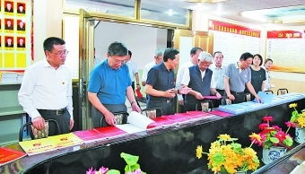 全國黨建研究會顧問張柏林(前排右三)、虞云耀(前排右一),副會長高世琦(前排右二)一行在河北省石家莊市欒城區(qū)調(diào)研。曹為民攝/光明圖片