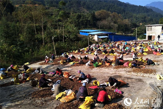 村民正在忙著挑揀油茶籽