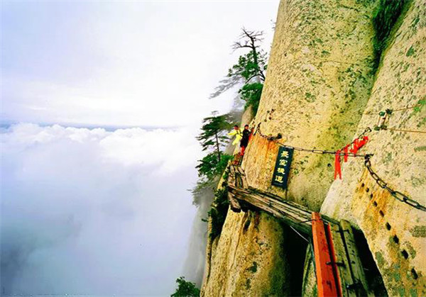 由于華山太險(xiǎn),所以唐代以前很少有人登臨。歷代君王祭西岳,都是在山下西岳廟中舉行大典?!妒酚洝份d,黃帝、虞舜都曾到華山巡狩。據(jù)記載,秦昭王時(shí)命工匠施鉤搭梯攀上華山。