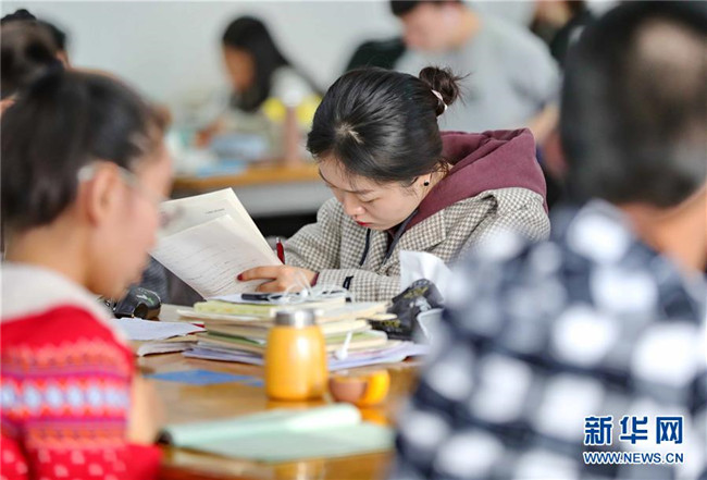 12月20日,在位于河北省秦皇島市的燕山大學,備考考生在學校圖書館復習。 2019年全國碩士研究生招生考試將于12月22日至24日舉行,廣大考生積極備考,進入最后的“沖刺模式”。據教育部數(shù)據,今年報考人數(shù)達290萬。 新華社發(fā)(曹建雄 攝)