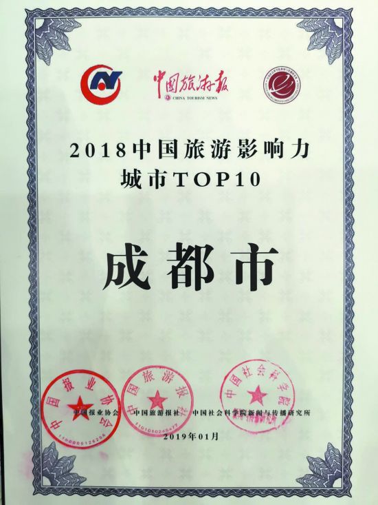 經(jīng)文化和旅游部批準(zhǔn),1月23日,以“新時代新視野新傳播新動能”為主題的2019中國旅游產(chǎn)業(yè)發(fā)展年會在京舉辦。文化和旅游部黨組成員、故宮博物院院長單霽翔作了《文旅融合的故宮實踐》主題演講,文化和旅游部黨組成員王曉峰作主旨講話,人民日報社原副社長、中國報業(yè)協(xié)會理事長張建星致辭。在2018年中國旅游產(chǎn)業(yè)影響力風(fēng)云榜的評選中,成都入選“2018中國旅游影響力城市TOP10”,一同入選的還有北京、杭州、蘇州、廣州等城市。此外,都江堰市入選“2018中國旅游影響力區(qū)縣TOP10”。