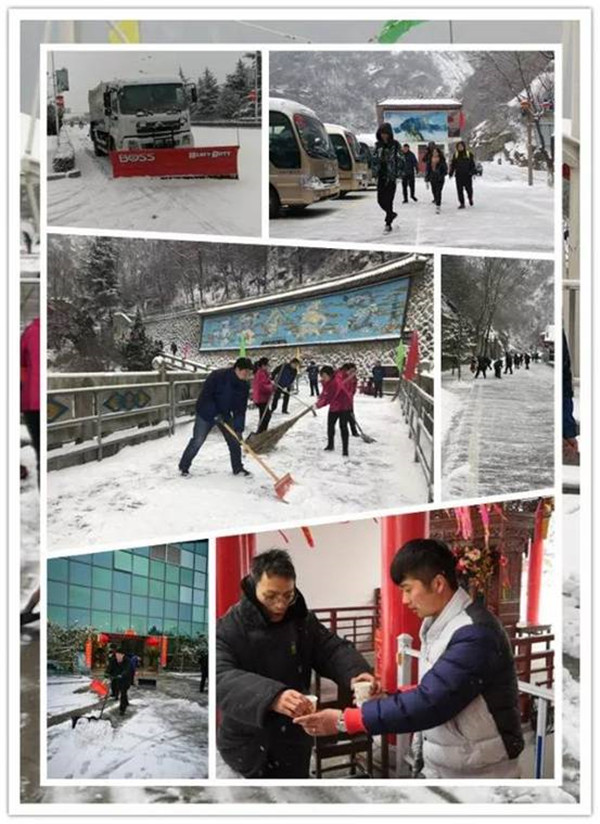 2月9日晚,一場(chǎng)大雪突降華山景區(qū),當(dāng)工作人員與游客一起沉浸在新年的喜悅氛圍時(shí),華山景區(qū)悄然鋪上了一層厚厚的積雪。2月10日早6時(shí),華旅集團(tuán)通過(guò)多渠道號(hào)召全體員工在各自崗位迅速開(kāi)展掃雪除冰工作。雪情就是命令,來(lái)不及欣賞新年首場(chǎng)雪景,廣大員工扛起掃把鐵鍬等掃雪工具,第一時(shí)間奔赴“戰(zhàn)場(chǎng)”,全力確保景區(qū)恢復(fù)運(yùn)營(yíng)。
