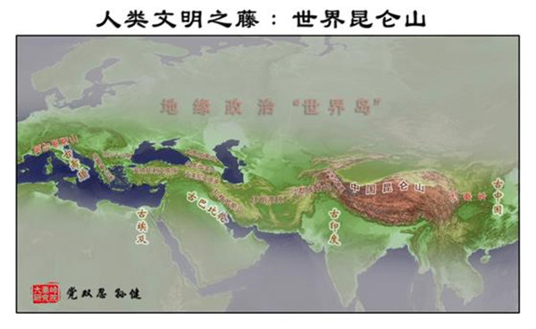 按照中國(guó)傳統(tǒng)的龍脈理論,“亞歐大陸的脊梁”也是“世界島”中央龍脈所在。由于人類古文明,包括古華夏、古印度、古波斯、古巴比倫,古希臘,皆源自“亞歐大陸脊梁”,所以也可稱其為“世界昆侖山”。著名的“絲稠之路”,也是從中國(guó)大秦嶺到歐洲阿爾卑斯山之路,也可稱之為“世界昆侖山之路”。過(guò)去,德國(guó)人首先“發(fā)現(xiàn)”了古老的“絲綢之路”。進(jìn)入21世紀(jì),英國(guó)人又率先以“絲綢之路”的視角,重新著述了“一部全新的人類史”。今天,中國(guó)人以“亞歐大陸的脊梁”為視野,將“世界島”連為一體,著述“一帶一路”,著述“大秦嶺到阿爾卑斯山之路”,著述“世界昆侖山之路”,也算是一個(gè)世界“地理新發(fā)現(xiàn)”。