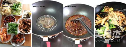 21.將所有食材準(zhǔn)備好后準(zhǔn)備炒香鍋,因為底料里油份很大,食材也有過了油的,所以炒至?xí)r無需放太多油