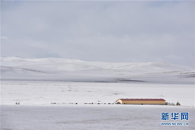 這是2月22日在青海省玉樹藏族自治州稱多縣拍攝的一處被大雪包圍的牧戶。