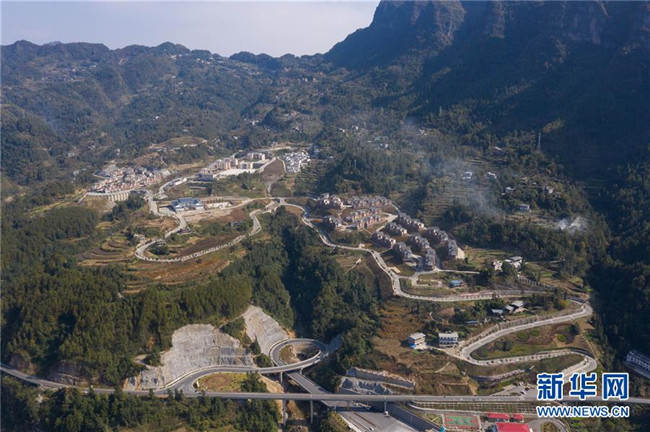 俯瞰南江縣橋亭鎮(zhèn)新居(2018年11月3日無人機拍攝)。新華社記者 江宏景 攝