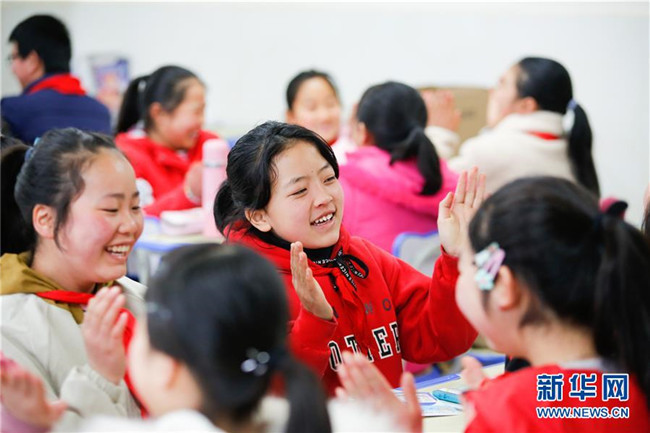 2月25日,在貴州省畢節(jié)市大方縣奢香古鎮(zhèn)恒大第十一小學(xué),孩子們?cè)陂_學(xué)第一天的課間玩小游戲。 新華社發(fā)(羅大富 攝)