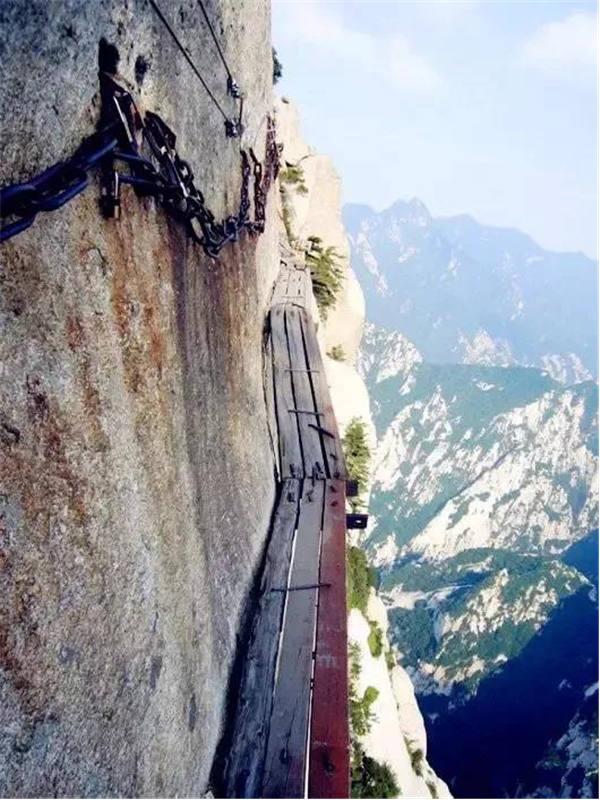 我站在華山兩塊窄窄的木板上,依靠鐵釘楔入巖石作為支撐,我的腳下,是1000米的深谷,冰雪的路面很滑。我來華山旅游純粹是因為在互聯(lián)網(wǎng)上瘋傳的一張圖片,也就是指“世界上最危險的登山路”那張?,F(xiàn)在有了安全保護措施,實際上用不著擔心危險了??謶致可闲念^,頭腦變得有些麻木。西安是中國的古城,在強盛朝代時期占有重要的歷史地位。