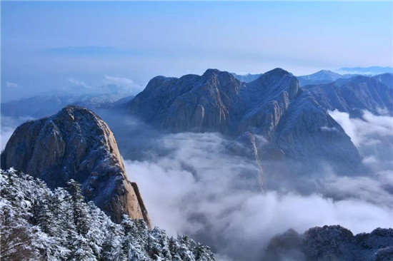 華山以奇險(xiǎn)峻秀聞名于天下,素有“奇險(xiǎn)天下第一山”之稱。明代著名地理學(xué)家徐霞客的游記中描述:“未入關(guān),百里之外,即見太華山搜索兀出云表。”