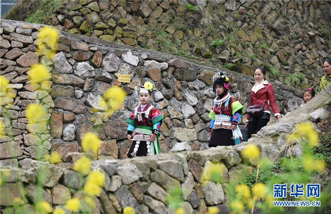 3月16日,在丹寨縣南皋鄉(xiāng)清江村,苗族姑娘在前往參加翻鼓節(jié)活動途中。 當(dāng)日,貴州省黔東南苗族侗族自治州丹寨縣南皋鄉(xiāng)清江村清江村舉行翻鼓節(jié)。翻鼓節(jié)是當(dāng)?shù)孛缱宕迕裼哟焊絹淼拿袼坠?jié)日,至今已有近600年歷史,每年農(nóng)歷二月舉行。 新華社記者 楊文斌 攝