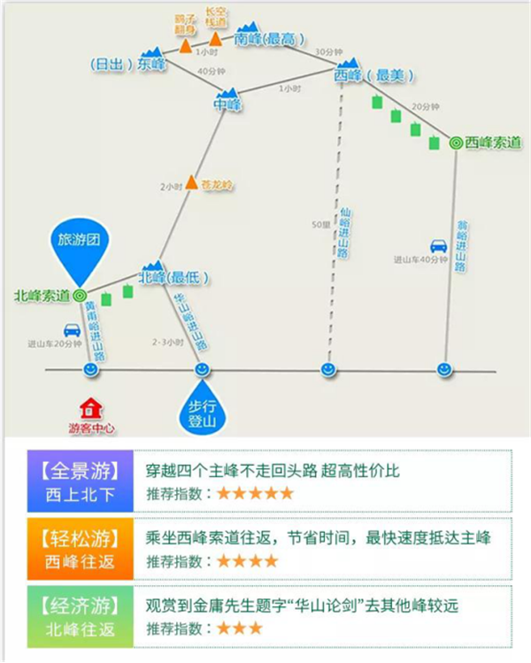 華山導覽(索道線路)示意圖