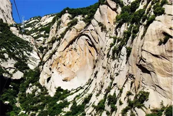 奇特之處:在東峰石樓峰東側(cè)的崖壁上,因大自然的風雨侵蝕,形成了一面酷似手掌的石紋。石上五指分明,形象逼真,高有數(shù)十米,奇瑰壯觀,被譽為陜西“關(guān)中八景”第一景。