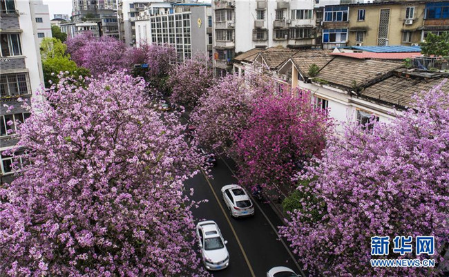 當(dāng)日,一場(chǎng)大雨過(guò)后,廣西柳州市內(nèi)的洋紫荊開(kāi)得格外嬌艷。時(shí)下,柳州市區(qū)27萬(wàn)株洋紫荊進(jìn)入盛花期。 新華社記者 黃孝邦 攝