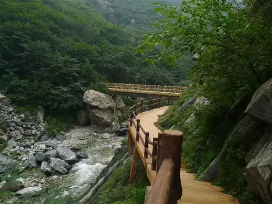 仙峪山奇水秀,峪道崎嶇幽深,怪石嶙峋,景色秀麗,景點多達30余處。有龍頭溝、蛤蟆溝、石板溝、三耳岔、河北頭可駐足,有白龍?zhí)丁⒛裉?、車箱潭、仙浴潭、仙人瀑等潭瀑,有斜嶺、白羊峰、車箱崖等峰嶺,有邢家姑姑祠、白雀寺、神宴林、仙樂林等佳處,有龜蛇鎖車箱、吊鐘、相公帽、飲馬槽等奇石。