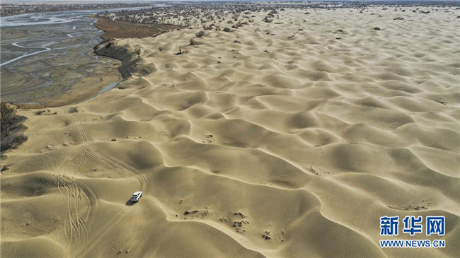 河流所到之處,沙漠里奇跡般生出胡楊、紅柳來(lái),沙洲被植物割據(jù)成斑塊狀。而河流因地轉(zhuǎn)偏向力向東飄移,或是水源不足斷流之處,沙漠便以最粗暴、快速的方式奪回領(lǐng)地,掙扎生存的文明頃刻便被鯨吞。