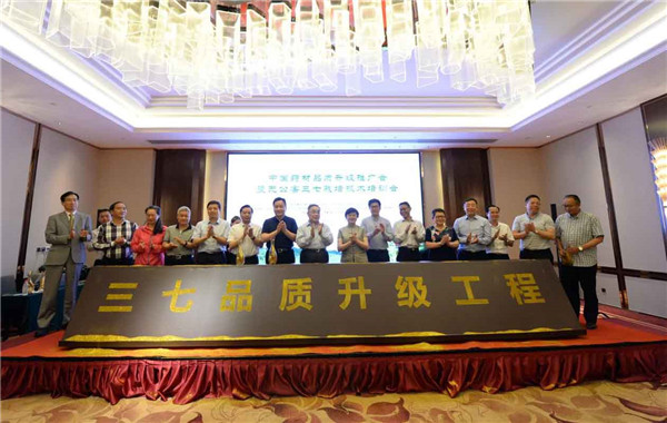 4月20日,中國工程院醫(yī)學(xué)部主任、中國中醫(yī)科學(xué)院院長張伯禮院士,中國中醫(yī)科學(xué)院中藥研究所所長陳士林,中國藥典委員會(huì)首席科學(xué)家錢忠直教授,南京農(nóng)業(yè)大學(xué)中藥材研究所所長郭巧生教授,云南中醫(yī)藥大學(xué)校長熊磊教授等專家學(xué)者抵達(dá)文山,調(diào)研文山三七發(fā)展?fàn)顩r,參與“中國藥材品質(zhì)升級推廣會(huì)暨無公害三七栽培技術(shù)培訓(xùn)”并作主題報(bào)告。會(huì)議上公布了首次獲批國家植物新品種權(quán)的三七品種,并透露出本次獲批新品種的特性:苗鄉(xiāng)1號多糖含量提高23.5%,苗鄉(xiāng)2號三七皂苷R1含量提高56.3%。