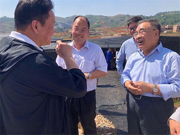 張伯禮院士、錢忠直教授、陳士林所長等在苗鄉(xiāng)三七種植資源圃交談 人民網(wǎng)張玫/攝