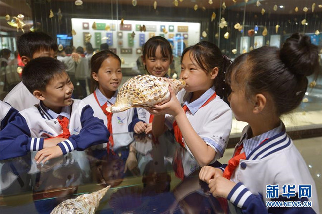 5月16日,學生們在青島貝殼博物館參觀展品。新華社發(fā)(王海濱 攝)