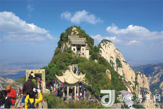 華山著名景區(qū)多達210余處,有凌空架設(shè)的長空棧道,三面臨空的鷂子翻身,以及在峭壁絕崖上鑿出的千尺幢、百尺峽、老君犁溝等,其中華岳仙掌被列為關(guān)中八景之首。