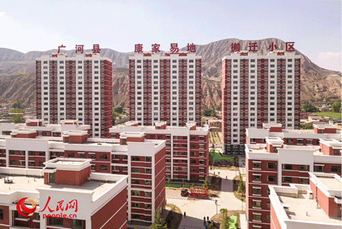 (若不是樓頂?shù)臉?biāo)牌提示,很難想象這樣整齊劃一的社區(qū)是扶貧搬遷安置點。人民網(wǎng) 張桂貴/航拍)