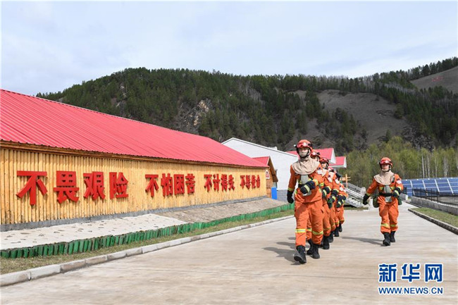 奇乾中隊(duì)的消防隊(duì)員在營地內(nèi)訓(xùn)練(5月15日攝)。新華社記者 劉磊 攝