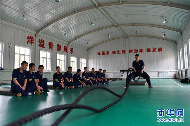 奇乾中隊(duì)的消防隊(duì)員在營地室內(nèi)訓(xùn)練(5月16日攝)。新華社記者 劉磊 攝