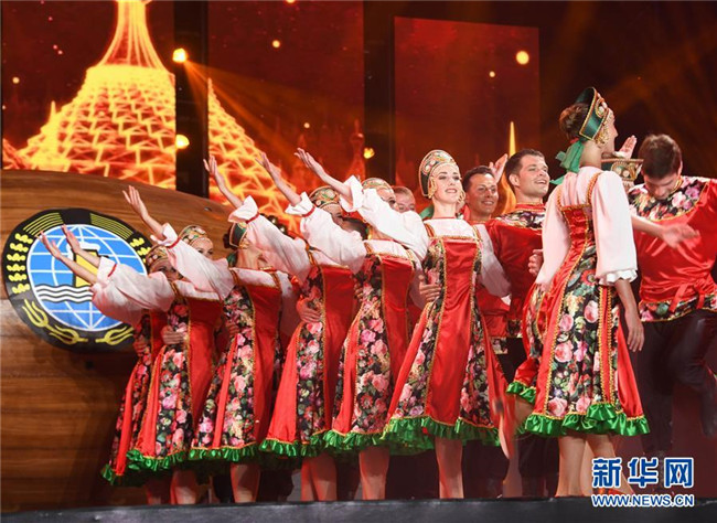 來(lái)自俄羅斯的演員在青島國(guó)際啤酒節(jié)開(kāi)幕式上表演(2018年7月20日攝)。新華社記者 李紫恒 攝