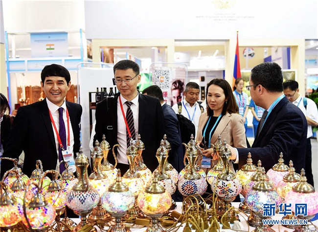 5月24日,在青島膠州方圓體育館,嘉賓在上海合作組織國(guó)際投資貿(mào)易博覽會(huì)上交流。新華社記者 李紫恒 攝
