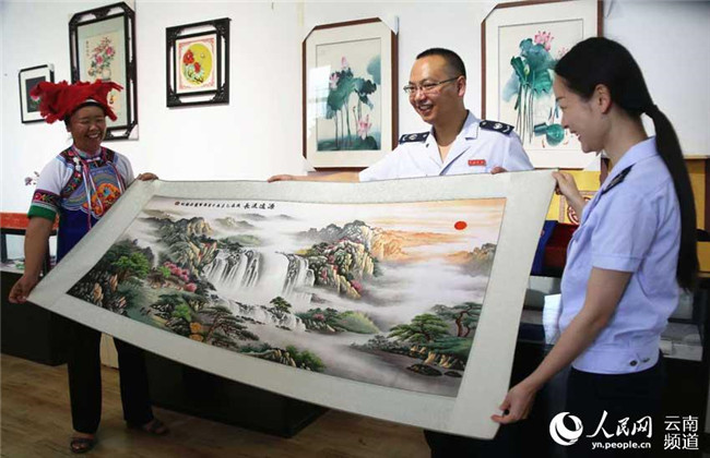 沉下心來學(xué)習(xí)刺繡的王陸芬朝著自己的小目標(biāo)努力。白天,她向村里的老人們學(xué)習(xí)刺繡技法,學(xué)習(xí)構(gòu)圖、畫圖,晚上就在家里刻苦練習(xí)。一有機(jī)會(huì),王陸芬就出去考察學(xué)習(xí)。“有一年去上海考察,看到他們的刺繡還沒有我做的精細(xì),沒想到價(jià)格還很貴。”這讓王陸芬堅(jiān)定了自己的想法,在王陸芬的帶動(dòng)下,白沙坡村成立了刺繡協(xié)會(huì),協(xié)會(huì)一開始只有26人。2014年2月,技藝日臻成熟的王陸芬成立了“紙藝刺繡農(nóng)民專業(yè)合作社”,2015年成立硯山縣華韻手工刺繡有限公司。