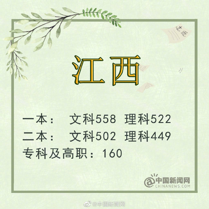 江西:一本理工類535分 文史類560分