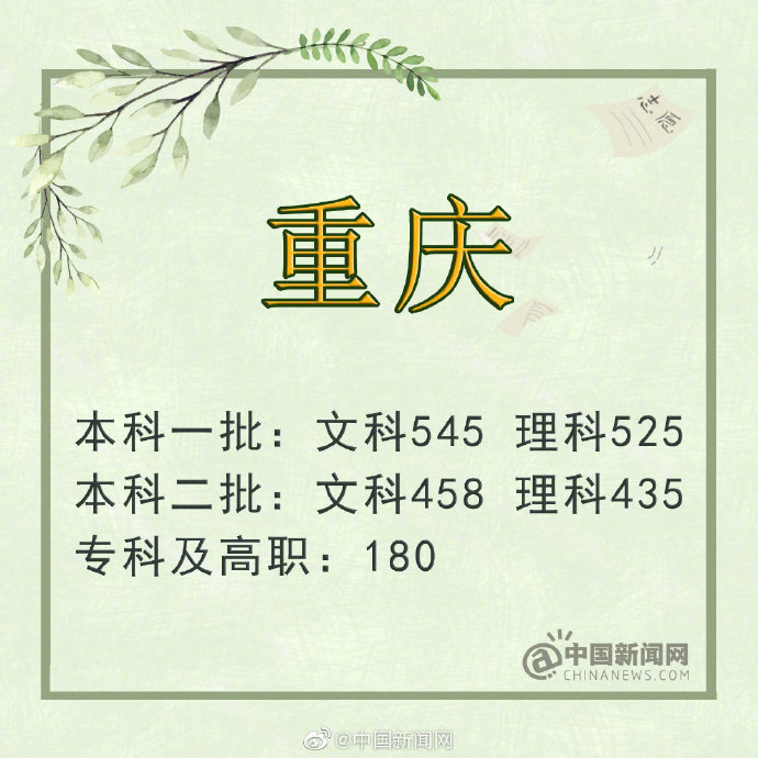 重慶:本科一批文史545分 理工525分