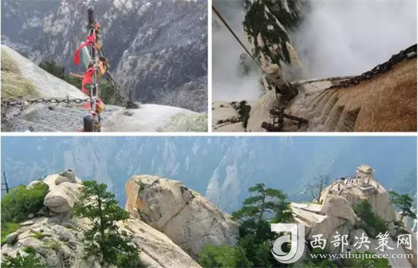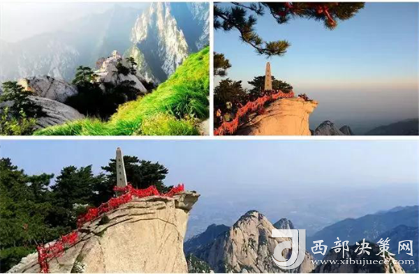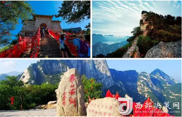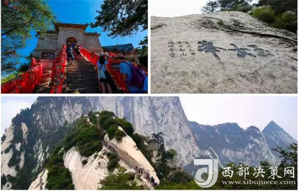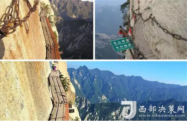 華山著名景區(qū)多達210余處,有凌空架設的長空棧道,三面臨空的鷂子翻身,以及在峭壁絕崖上鑿出的千尺幢、百尺峽、老君犁溝等,其中華岳仙掌被列為關(guān)中八景之首。