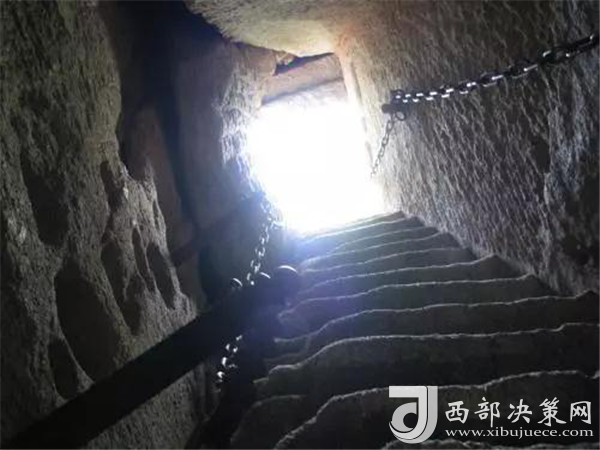 大上方——“上方”是道教術(shù)語,意為“天界”,大上方是華山道士焦道廣隱居之處,其路好似掛在懸崖峭壁上,近看,只能靠攀藤附葛、足蹬石窩才能上去,所以意為這是只有能像神仙騰云駕霧才能走的地方!