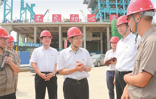 7月1日,自治區(qū)主席陳武深入防城港市,就金屬材料工業(yè)高質(zhì)量發(fā)展情況進(jìn)行調(diào)研。這是在柳鋼防城港鋼鐵基地項(xiàng)目施工現(xiàn)場(chǎng),陳武仔細(xì)詢問(wèn)項(xiàng)目建設(shè)進(jìn)度和配套碼頭建設(shè)情況。 記者 黃 克/攝