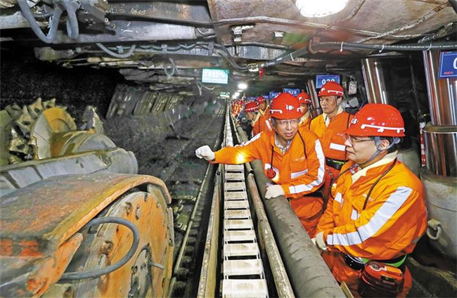 7月2日,省委書記胡和平來到錦界煤礦調(diào)研。在礦井下,他仔細(xì)了解煤礦生產(chǎn)運(yùn)營情況。記者 宋紅梅攝