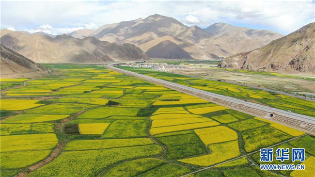 7月2日在拉薩市堆龍德慶區(qū)德慶鄉(xiāng)拍攝的油菜花田。近日,西藏各地的油菜花盛開,呈現(xiàn)出生機(jī)勃勃的夏日美景。新華社記者普布扎西攝