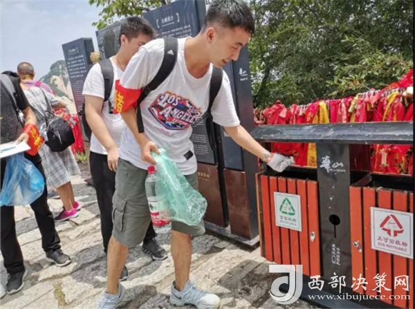 志愿者以實際行動踐行志愿者精神,宣傳環(huán)保理念。7月12日早晨,即使天空下著雨也沒能阻擋志愿者們對本次公益活動熱情,他們同工作人員一同來到華山景區(qū)開展主題為“相約青春,綠行環(huán)保”的登山撿垃圾環(huán)保公益活動。
