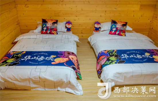 再往里邊走就是大朋友(成人)的休息場(chǎng)所,同樣以華山故事為主題布置的床,干凈整潔,元素主題鮮明,床上還為大朋友(成人)準(zhǔn)備了“華山吾俠”系列U型枕,自駕來(lái)的朋友可以帶上它,來(lái)緩解因久坐開(kāi)車(chē)帶來(lái)的頸椎酸痛。