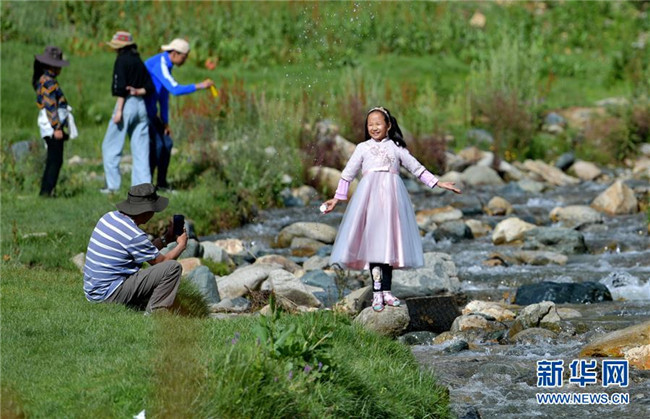 游人在達(dá)東村景區(qū)小溪邊玩耍(7月20日攝)。西藏拉薩市柳梧鄉(xiāng)達(dá)東村是一個(gè)千年古村,也曾是一個(gè)貧困村。近年來(lái),依托秀美的自然風(fēng)光、深厚的歷史文化和淳樸的風(fēng)土人情,當(dāng)?shù)卣畬?shí)施文化旅游產(chǎn)業(yè)精準(zhǔn)扶貧,使達(dá)東村蛻變成為鄉(xiāng)村旅游勝地。新華社記者張汝鋒攝