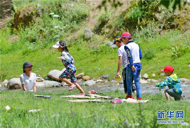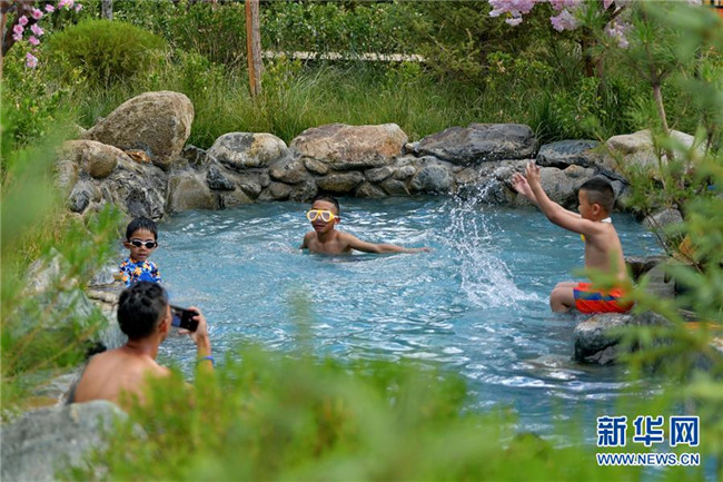 孩子們?cè)谶_(dá)東村景區(qū)溫泉里嬉戲(7月20日攝)。西藏拉薩市柳梧鄉(xiāng)達(dá)東村是一個(gè)千年古村,也曾是一個(gè)貧困村。近年來(lái),依托秀美的自然風(fēng)光、深厚的歷史文化和淳樸的風(fēng)土人情,當(dāng)?shù)卣畬?shí)施文化旅游產(chǎn)業(yè)精準(zhǔn)扶貧,使達(dá)東村蛻變成為鄉(xiāng)村旅游勝地。新華社記者張汝鋒攝