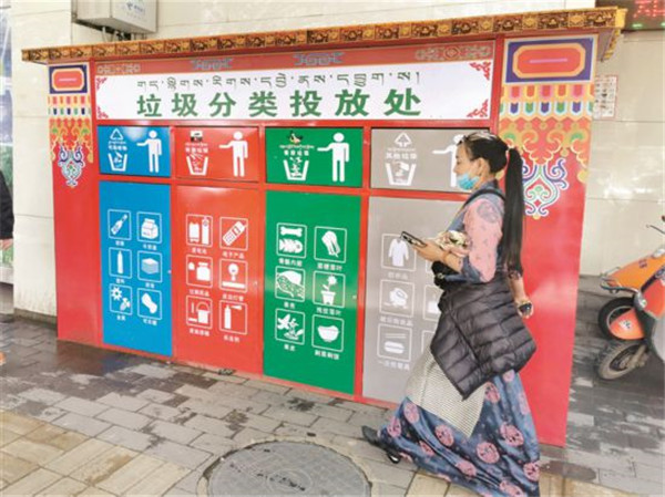 圖為垃圾分類投放處。索朗普赤攝