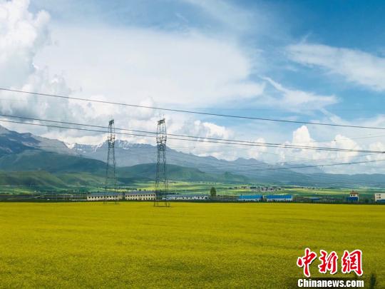 甘肅祁連山“雪頂”與萬畝油菜花交相輝映