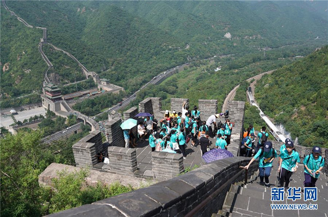 7月21日,參加“2019同心同根萬(wàn)里行”活動(dòng)的香港青少年在北京居庸關(guān)長(zhǎng)城游覽。 新華社記者鞠煥宗攝