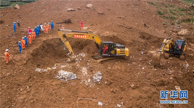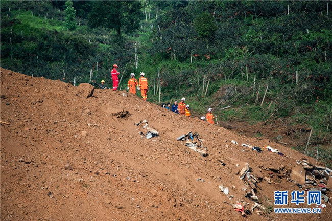 7月24日,救援人員在山體滑坡現(xiàn)場(chǎng)開(kāi)展救援。 新華社記者 陶亮 攝